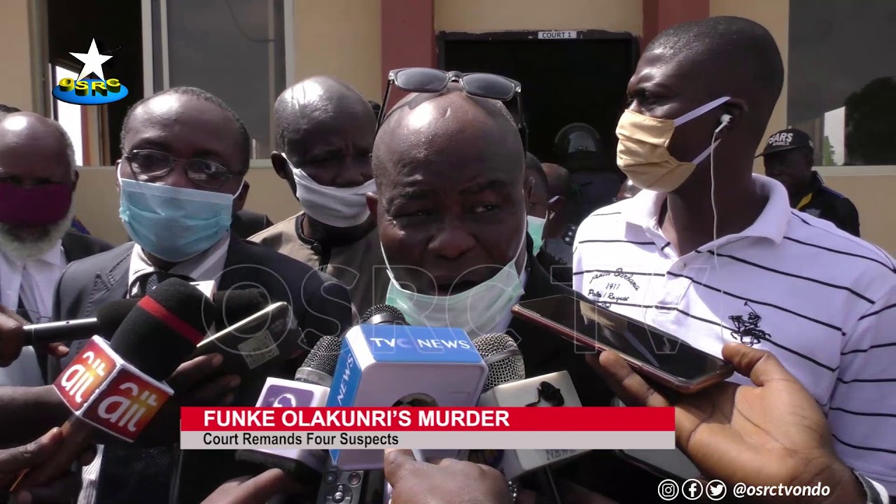 Four members of an 8 man gang that allegedly killed Mrs Funke Olakunri, daughter of Afenifere leader, Pa Rueben Fasoranti in July last year have been remanded at the Owo facility of the Nigerian Correctional Service, by an Ondo state Chief Magistrate court sitting in Akure.