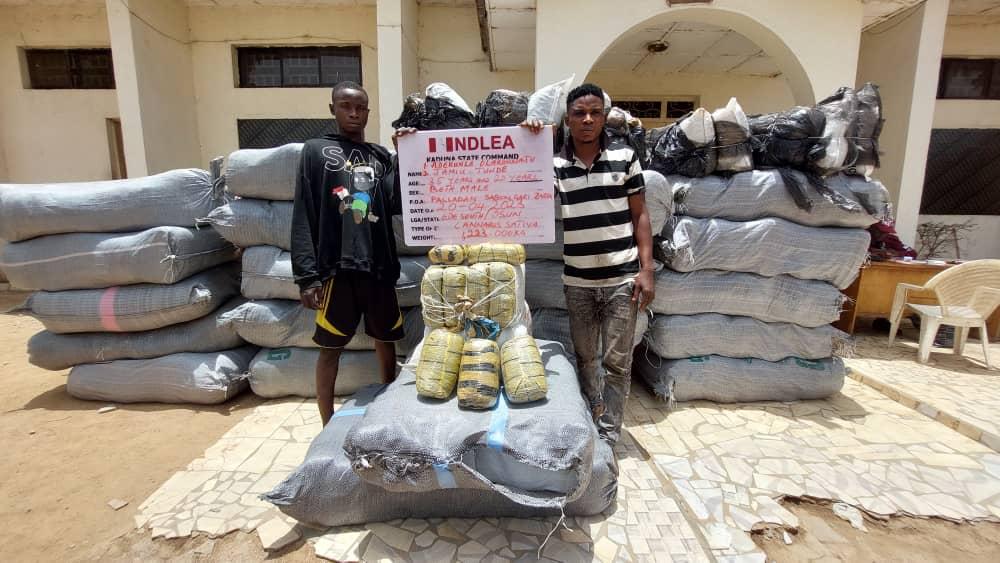 On the same day in Kaduna, operatives acting on credible intelligence intercepted a truck conveying 110 bags and 200 compressed blocks of cannabis sativa weighing 1.223 tons (1,223kg) in Zaria while the truck driver, Adekunle Olanrewaju, 32, and his assistant, Tunde Jamiu, 20, were arrested.