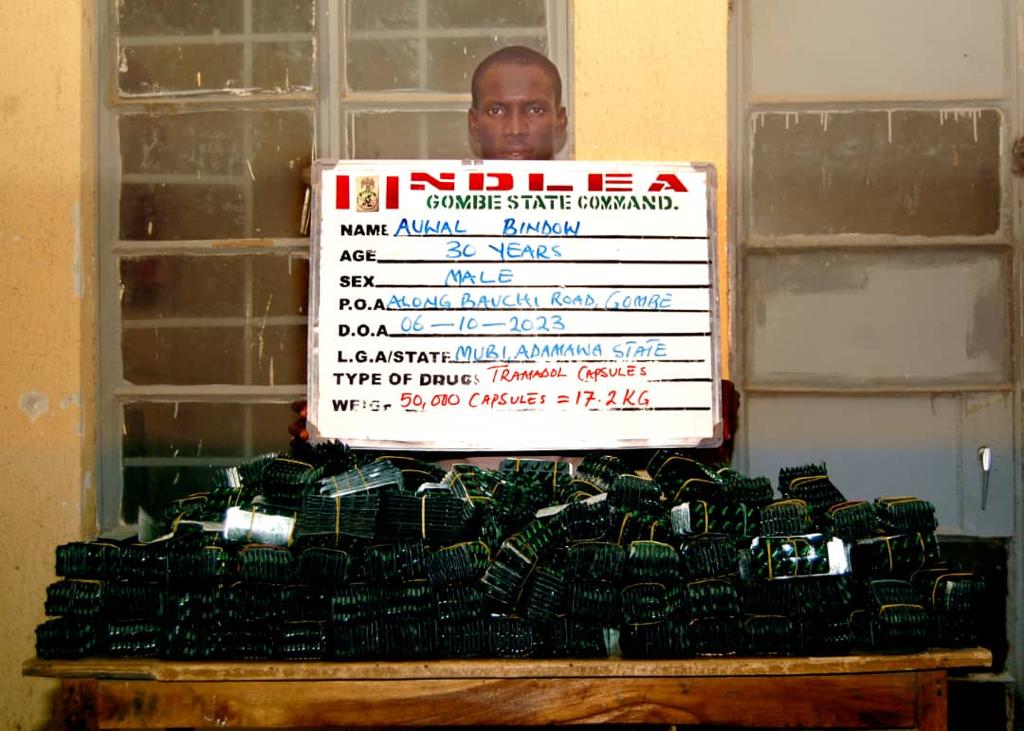 In Gombe state, a suspect, Auwal Bindow was arrested on Friday 6th October along Bauchi – Gombe road with 50,000 capsules of tramadol, while in Oyo state, NDLEA operatives on patrol along the Lagos-Ibadan expressway nabbed Anuoluwapo Blessing Iyanu, 32, with 52 blocks of compressed pawpaw shaped cannabis sativa weighing 30kgs on Wednesday 4th October.