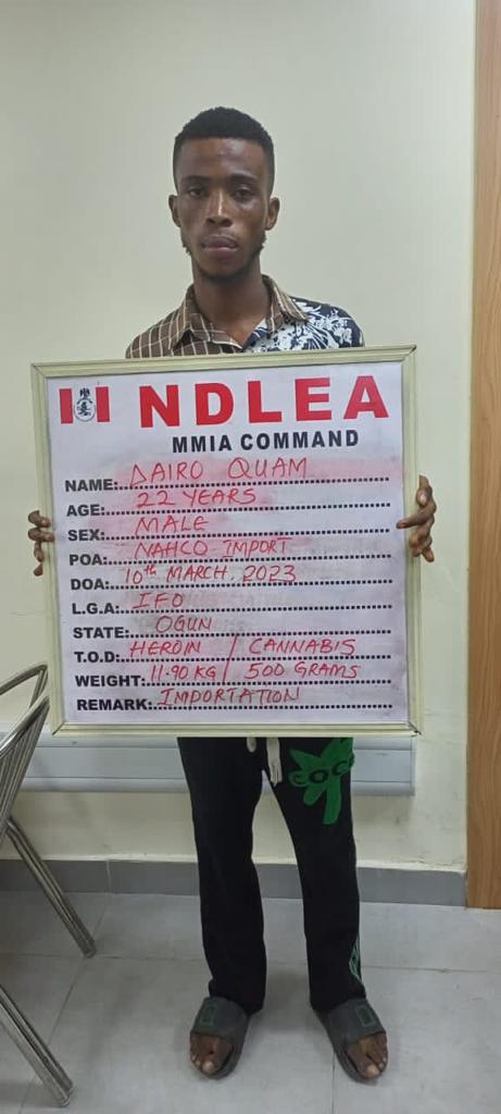 A rehabilitated ex-fighter of the Boko Haram terror group, Alayi Madu and the traditional ruler of Kajola, a border community between Ondo and Edo state, Baale Akinola Adebayo are among 37 persons arrested over 2.2 tons of illicit drugs seized by operatives of the National Drug Law Enforcement Agency, NDLEA at the Murtala Muhammed International Airport, MMIA Ikeja, Lagos and in raids across 12 states in the past week.