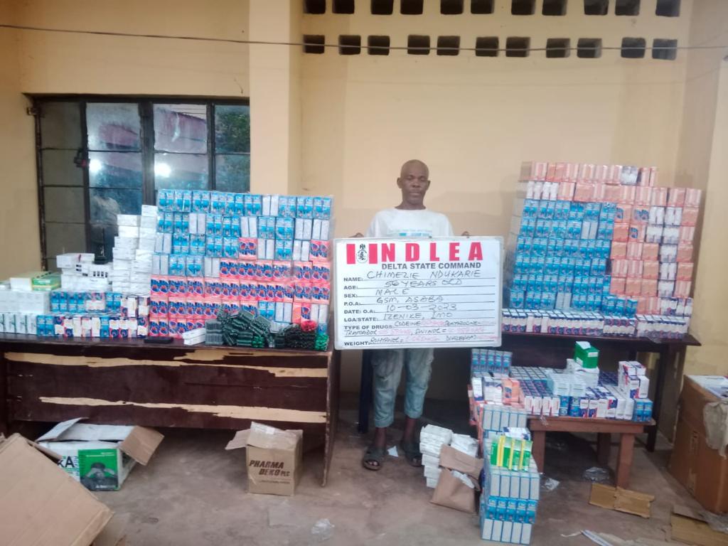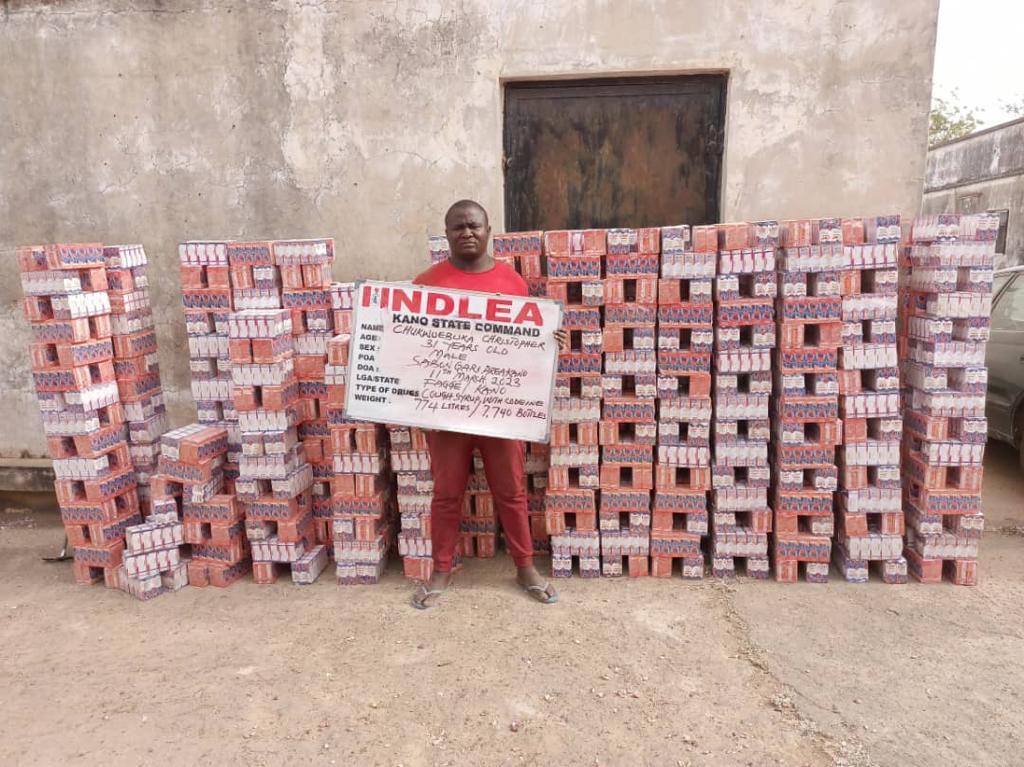 In Kano state, NDLEA operatives on Saturday 11th March raided the Sabon-gari area of Kano where they arrested a suspect, Chukwuebuka Christopher and recovered from him 7,740 bottles of Codeine based syrup, measuring 774 litres, concealed inside 43 sacks of garlic.