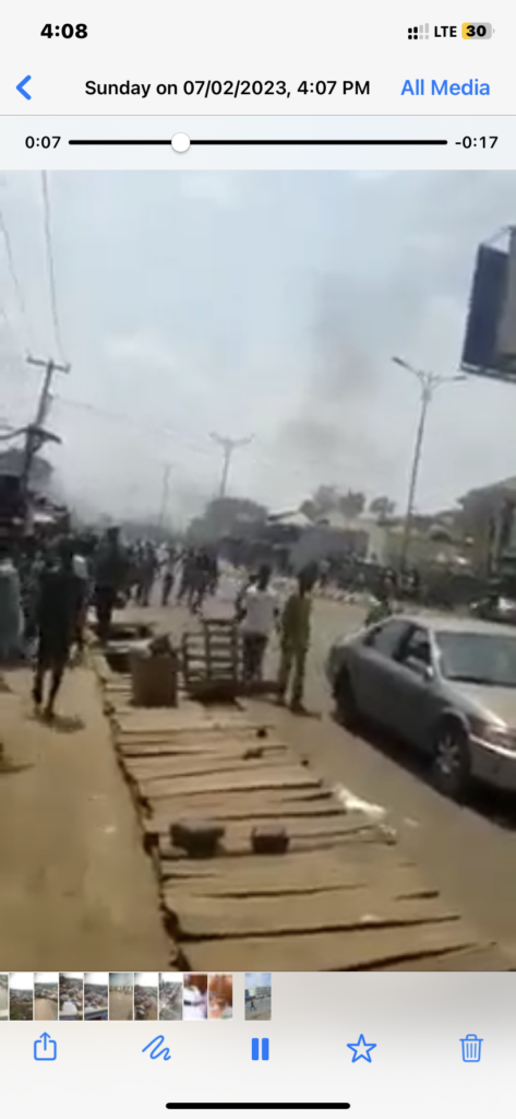 Abẹ́òkúta, Ogun State Capital, has joined the cities where protests are raging over the scarcity of Naira notes and petrol. Unconfirmed reports indicate that some banks are being attacked while irate youths are also making bonfires on roads and major streets.