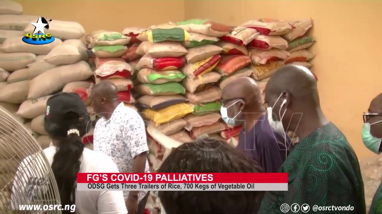 Ondo State Governor, Arakunrin Oluwatimi Akeredolu SAN, has received three trailers of rice and 700 kegs of vegetable oil, which are COVID-19 palliatives allocated to the state by the Federal Government.